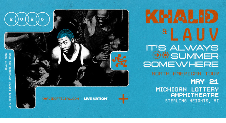 Copy for Calendar Page Khalid: It’s Summer Somewhere Tour with special guest Lauv May 21st Michigan Lottery Amphitheatre Get tickets here